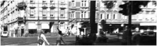该图像实际上描绘了我们的汽车驶近广场,几个人在我们的车前方横过马路。