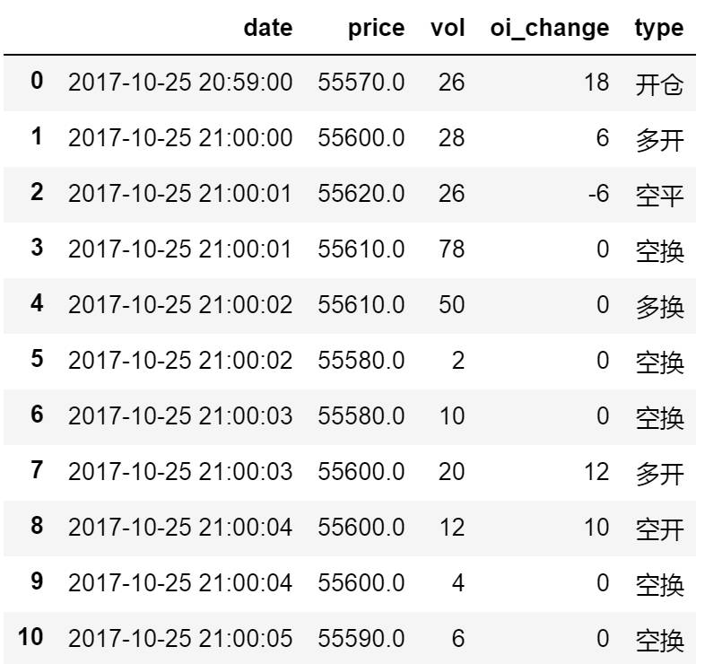 #期货tick,type:买卖方向,0:开仓 1:多开 -1:空开