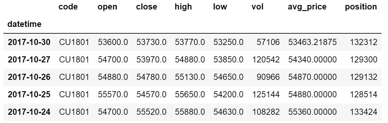 df = ts.bar('CU1801', conn=cons, asset='X', start_date='2016-01-01', end_date='')