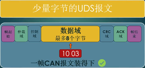 一个UDS的请求或者响应的发送方,发出一个单帧(SF)即可,接收方接收到就可以了。因为单帧的时候,这一帧CAN报文是能够装得下所有的uds报文。