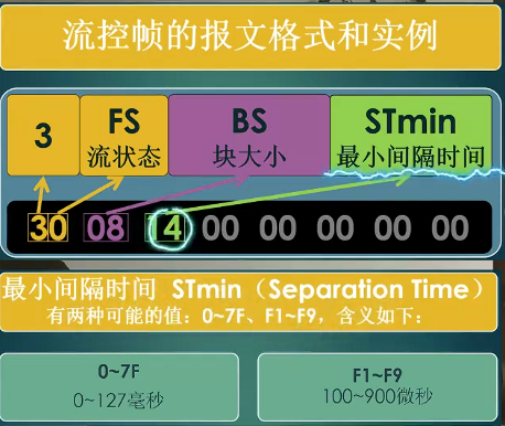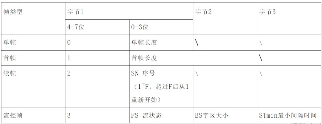 第3个字节为最小间隔时间:两条发送帧之间的最小时间间隔。当STmin=0时,表示发送方可以不用等待,连续发送数据。