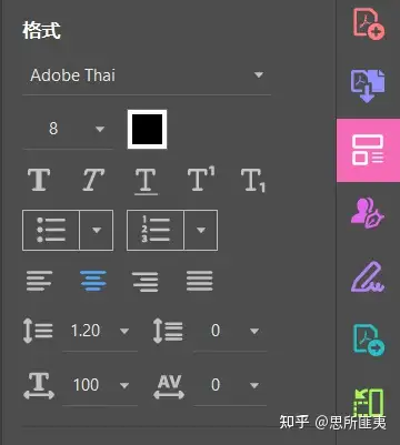 设置如下,注意此处字体,基本字体名称 不行的话使用“嵌入字体中的字体名称”,字体类型(“文本”项)需要根据上边“编辑文本和图形”的字体在文档里查看嵌入字体类型。方法是:Ctrl-D在字体栏里查找对于Adobe Thai的AdobeThai-Regular。