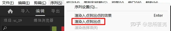 解决:选择“序列 - 渲染入点到出点”会对序列进行渲染,预览会变得流畅。