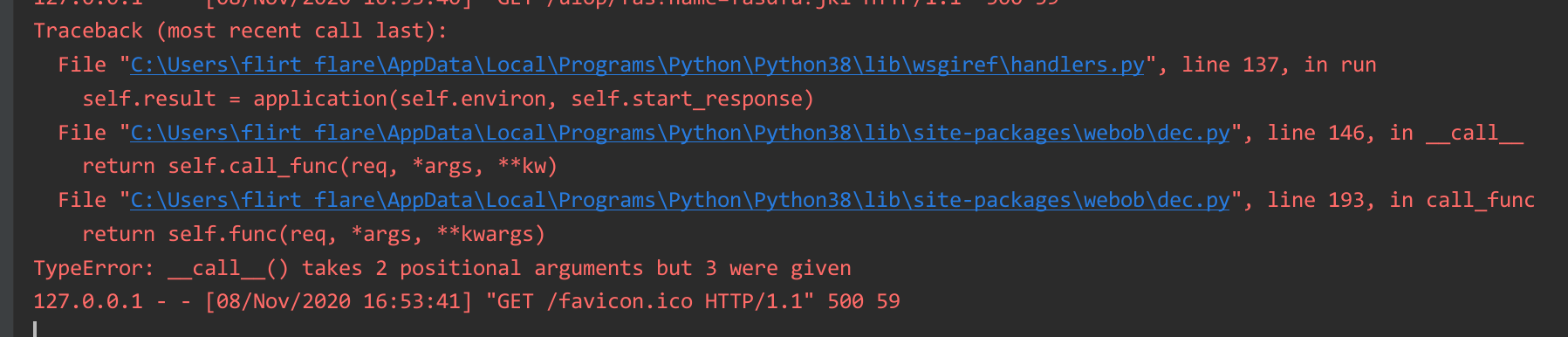 {'ALLUSERSPROFILE': 'C:\\ProgramData', 'APPDATA': 'C:\\Users\\flirt flare\\AppData\\Roaming', 'CATALINA_HOME': 'C:\\Program Files\\apache-tomcat-9.0.36', 'CLASSPATH': '.,C:\\Program Files\\Java\\jdk-14.0.1\\lib', 'COMMONPROGRAMFILES': 'C:\\Program Files\\Common Files', 'COMMONPROGRAMFILES(X86)': 'C:\\Program Files (x86)\\Common Files', 'COMMONPROGRAMW6432': 'C:\\Program Files\\Common Files', 'COMPUTERNAME': 'RECOMPENSE', 'COMSPEC': 'C:\\Windows\\system32\\cmd.exe', 'DRIVERDATA': 'C:\\Windows\\System32\\Drivers\\DriverData', 'HOMEDRIVE': 'C:', 'HOMEPATH': '\\Users\\flirt flare', 'IDEA_INITIAL_DIRECTORY': 'C:\\Users\\flirt flare\\Desktop', 'JAVA_HOME': 'C:\\Program Files\\Java\\jdk-14.0.1', 'LOCALAPPDATA': 'C:\\Users\\flirt flare\\AppData\\Local', 'LOGONSERVER': '\\\\RECOMPENSE', 'NUMBER_OF_PROCESSORS': '4', 'ONEDRIVE': 'C:\\Users\\flirt flare\\OneDrive', 'OS': 'Windows_NT', 'PATH': 'C:\\Program Files (x86)\\Common Files\\Oracle\\Java\\javapath;C:\\Program Files (x86)\\Intel\\iCLS Client\\;C:\\Program Files\\Intel\\iCLS Client\\;C:\\Windows\\system32;C:\\Windows;C:\\Windows\\System32\\Wbem;C:\\Windows\\System32\\WindowsPowerShell\\v1.0\\;C:\\Program Files (x86)\\Intel\\Intel(R) Management Engine Components\\DAL;C:\\Program Files\\Intel\\Intel(R) Management Engine Components\\DAL;C:\\Program Files (x86)\\Intel\\Intel(R) Management Engine Components\\IPT;C:\\Program Files\\Intel\\Intel(R) Management Engine Components\\IPT;C:\\Program Files (x86)\\NVIDIA Corporation\\PhysX\\Common;C:\\Windows\\system32;C:\\Windows;C:\\Windows\\System32\\Wbem;C:\\Windows\\System32\\WindowsPowerShell\\v1.0\\;C:\\Windows\\System32\\OpenSSH\\;C:\\Program Files (x86)\\Common Files\\Thunder Network\\KanKan\\Codecs;C:\\Program Files\\Java\\jdk-14.0.1\\bin;C:\\Program Files\\apache-maven-3.6.3\\bin;C:\\Program Files\\apache-tomcat-9.0.36\\bin;C:\\Program Files\\Windows Imaging\\;C:\\Program Files (x86)\\Windows Kits\\8.1\\Windows Performance Toolkit\\;C:\\Program Files\\apache-tomcat-9.0.36\\bin;C:\\Program Files\\Git\\cmd;C:\\Program Files\\OpenSSH;C:\\Program Files\\IDM Computer Solutions\\UltraEdit;C:\\Program Files\\MySQL\\MySQL Server 8.0\\bin;C:\\Program Files\\MySQL\\MySQL Shell 8.0\\bin\\;C:\\Users\\flirt flare\\AppData\\Local\\Programs\\Python\\Python38\\Scripts\\;C:\\Users\\flirt flare\\AppData\\Local\\Programs\\Python\\Python38\\;C:\\Users\\flirt flare\\AppData\\Local\\Programs\\Python\\Launcher\\;C:\\Users\\flirt flare\\AppData\\Local\\Microsoft\\WindowsApps;C:\\Program Files (x86)\\Nmap;d:\\Program Files\\JetBrains\\PyCharm Community Edition 2019.3.3\\bin;', 'PATHEXT': '.COM;.EXE;.BAT;.CMD;.VBS;.VBE;.JS;.JSE;.WSF;.WSH;.MSC', 'PROCESSOR_ARCHITECTURE': 'AMD64', 'PROCESSOR_IDENTIFIER': 'Intel64 Family 6 Model 94 Stepping 3, GenuineIntel', 'PROCESSOR_LEVEL': '6', 'PROCESSOR_REVISION': '5e03', 'PROGRAMDATA': 'C:\\ProgramData', 'PROGRAMFILES': 'C:\\Program Files', 'PROGRAMFILES(X86)': 'C:\\Program Files (x86)', 'PROGRAMW6432': 'C:\\Program Files', 'PSMODULEPATH': 'C:\\Program Files\\WindowsPowerShell\\Modules;C:\\Windows\\system32\\WindowsPowerShell\\v1.0\\Modules', 'PUBLIC': 'C:\\Users\\Public', 'PYCHARM COMMUNITY EDITION': 'd:\\Program Files\\JetBrains\\PyCharm Community Edition 2019.3.3\\bin;', 'PYCHARM_HOSTED': '1', 'PYTHONIOENCODING': 'UTF-8', 'PYTHONPATH': 'C:\\Users\\flirt flare\\PycharmProjects\\notary', 'PYTHONUNBUFFERED': '1', 'SESSIONNAME': 'Console', 'SYSTEMDRIVE': 'C:', 'SYSTEMROOT': 'C:\\Windows', 'TEMP': 'C:\\Users\\FLIRTF~1\\AppData\\Local\\Temp', 'TMP': 'C:\\Users\\FLIRTF~1\\AppData\\Local\\Temp', 'USERDOMAIN': 'RECOMPENSE', 'USERDOMAIN_ROAMINGPROFILE': 'RECOMPENSE', 'USERNAME': 'flirt flare', 'USERPROFILE': 'C:\\Users\\flirt flare', 'VS140COMNTOOLS': 'C:\\Program Files (x86)\\Microsoft Visual Studio 14.0\\Common7\\Tools\\', 'WINDIR': 'C:\\Windows', 'SERVER_NAME': 'recompense', 'GATEWAY_INTERFACE': 'CGI/1.1', 'SERVER_PORT': '9999', 'REMOTE_HOST': '', 'CONTENT_LENGTH': '', 'SCRIPT_NAME': '', 'SERVER_PROTOCOL': 'HTTP/1.1', 'SERVER_SOFTWARE': 'WSGIServer/0.2', 'REQUEST_METHOD': 'GET', 'PATH_INFO': '/favicon.ico', 'QUERY_STRING': '', 'REMOTE_ADDR': '127.0.0.1', 'CONTENT_TYPE': 'text/plain', 'HTTP_HOST': '127.0.0.1:9999', 'HTTP_CONNECTION': 'keep-alive', 'HTTP_PRAGMA': 'no-cache', 'HTTP_CACHE_CONTROL': 'no-cache', 'HTTP_USER_AGENT': 'Mozilla/5.0 (Windows NT 10.0; WOW64) AppleWebKit/537.36 (KHTML, like Gecko) Chrome/70.0.3538.25 Safari/537.36 Core/1.70.3823.400 QQBrowser/10.7.4307.400', 'HTTP_ACCEPT': 'image/webp,image/apng,image/*,*/*;q=0.8', 'HTTP_REFERER': 'http://127.0.0.1:9999/uiop/fas?name=fasdfa?jkl', 'HTTP_ACCEPT_ENCODING': 'gzip, deflate, br', 'HTTP_ACCEPT_LANGUAGE': 'zh-CN,zh;q=0.9', 'wsgi.input': <_io.BufferedReader name=656>, 'wsgi.errors': <_io.TextIOWrapper name='<stderr>' mode='w' encoding='utf-8'>, 'wsgi.version': (1, 0), 'wsgi.run_once': False, 'wsgi.url_scheme': 'http', 'wsgi.multithread': False, 'wsgi.multiprocess': False, 'wsgi.file_wrapper': <class 'wsgiref.util.FileWrapper'>}