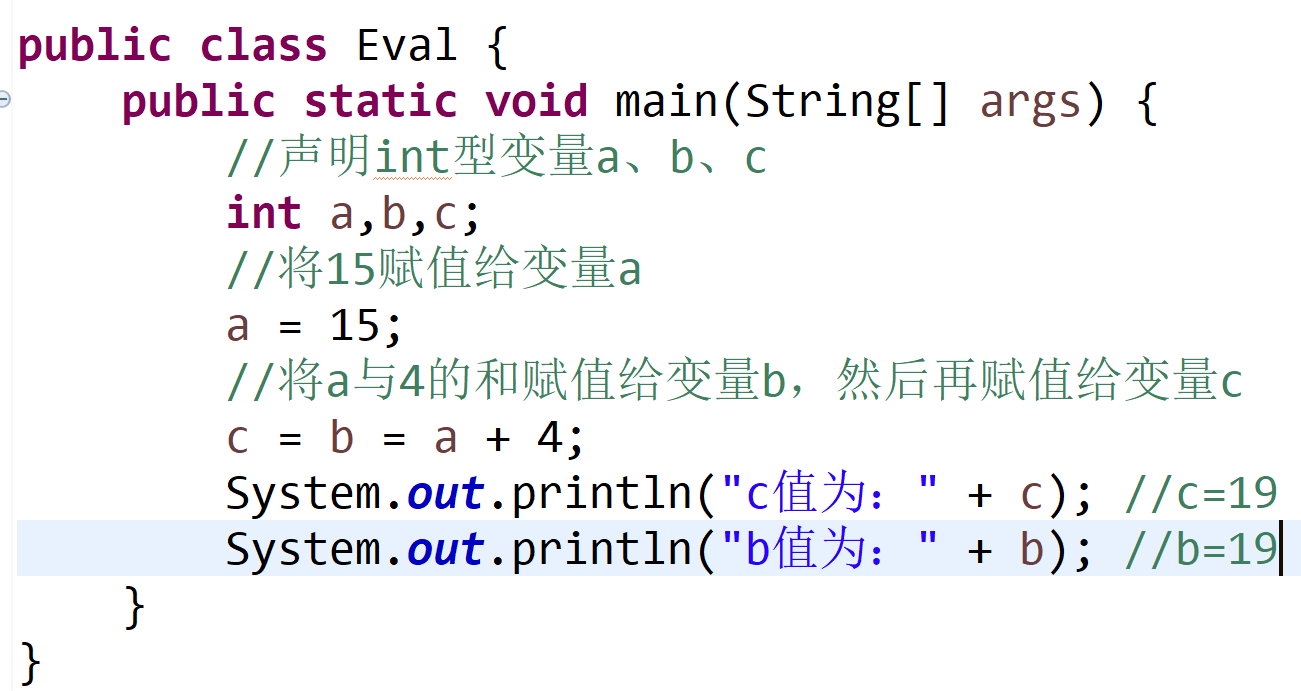 由于赋值运算符 “=” 处理时会先取得右方表达式处理后的结果,因此一个表达式中若含有两个以上的 “=” 运算符,会从最右方 “=” 开始处理。