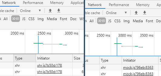 通过开发人员工具排除xhr请求是否通过mock.js发送,当Initiator为mock.js时excel乱码,Initiator为xhr.js时正常