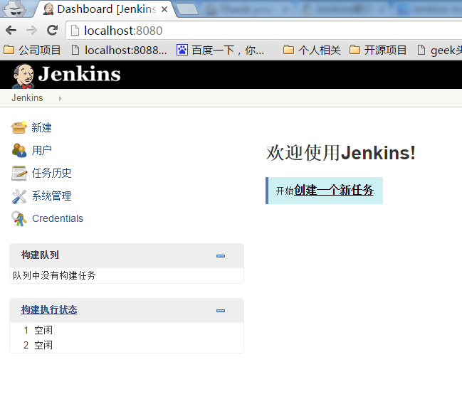 安装完成之后,在本地浏览器中输入 http://localhost:8080 , 打开jenkins的主界面如下: