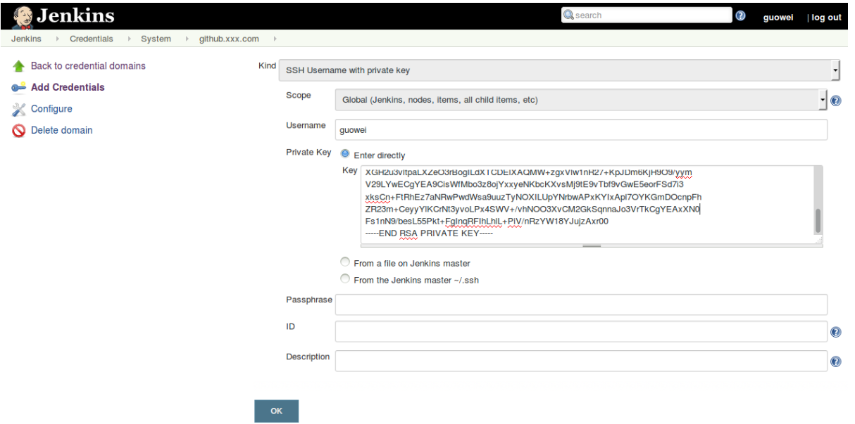 将git生成的公钥添加到git 项目中,同时把公钥添加到jenkins 凭据中即可。