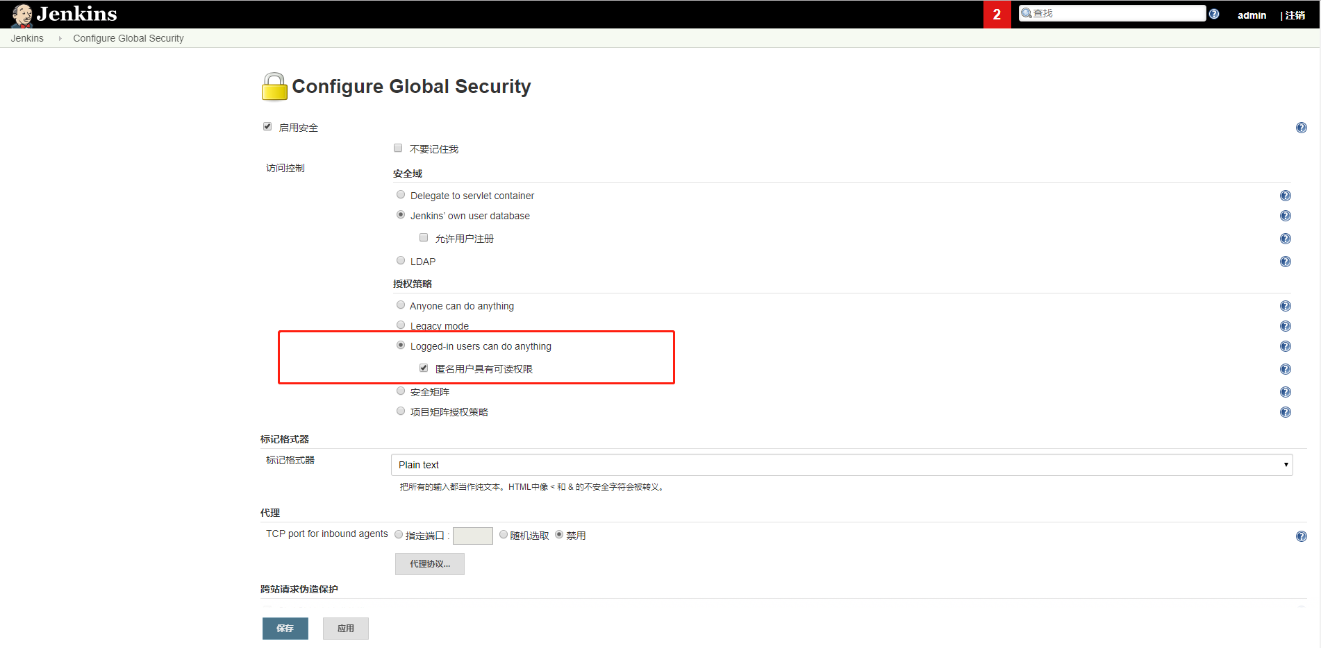 设置Configure Global Secturity,选择Logged-in users can do anything 即可。