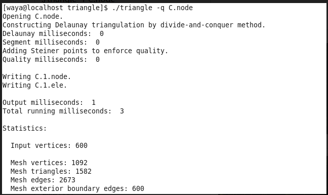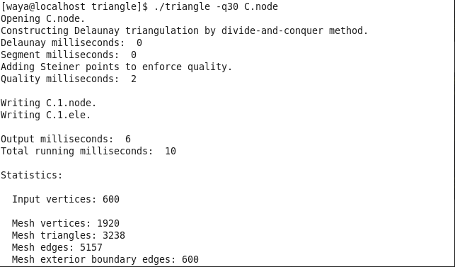 冗长:给出关于Triangle正在做什么的详细信息。增加更多的V来增加细节。' -V'提供有关算法进展和详细统计的信息。