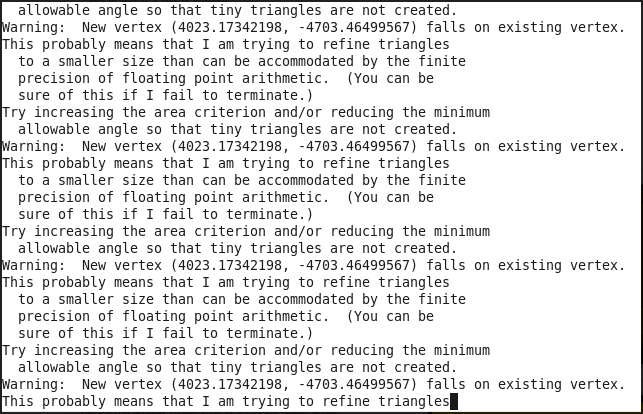 检查最终网格的一致性。使用精确的算法进行检查,即使使用了-X开关。如果你怀疑三角形有问题,这很有用。