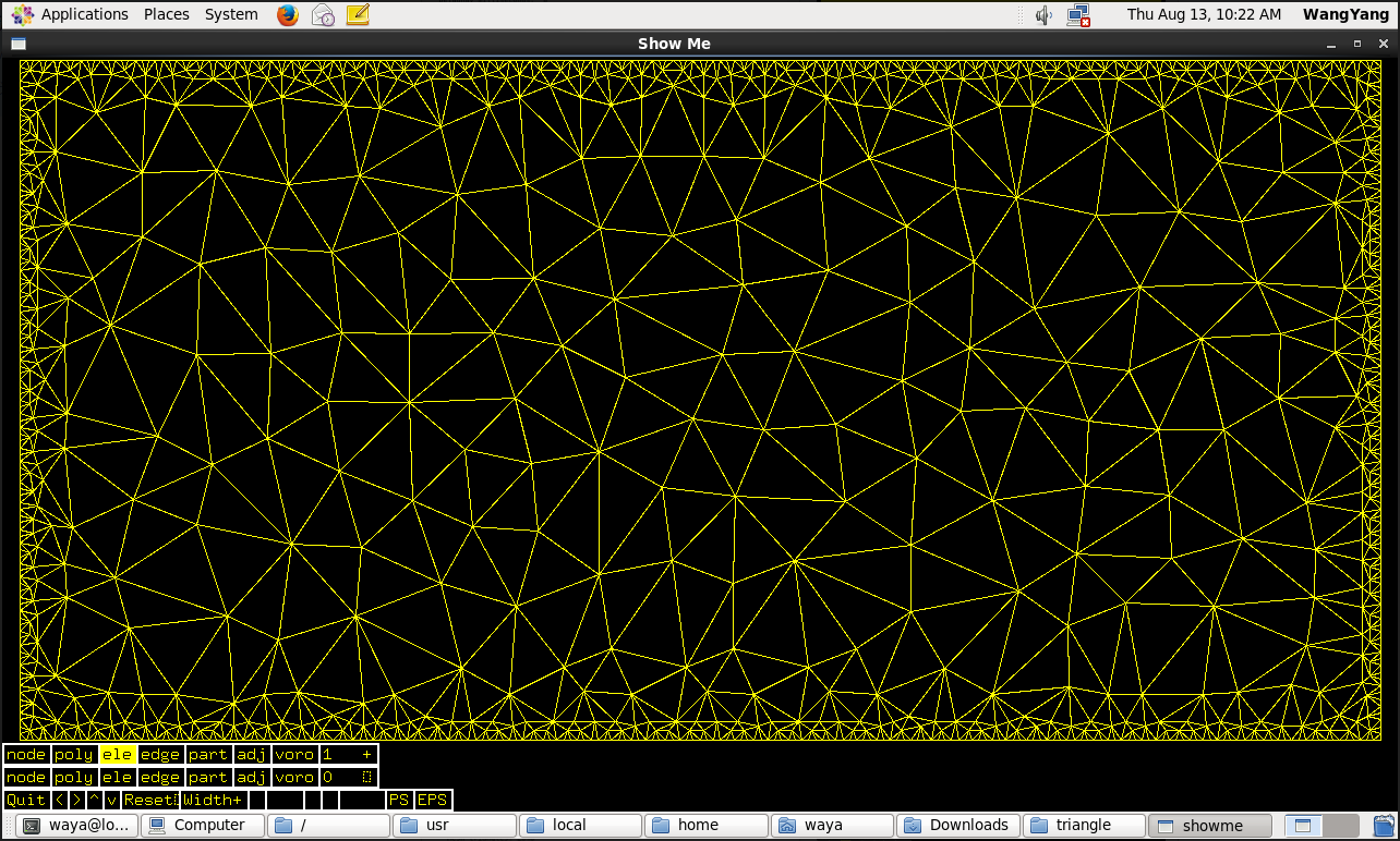 因为本身triangle库自带的,用于显示结果的showme程序是需要在LINUX,所以通过搭建LINUX环境,对triangle相应的参数开关做了简单的测试,以便在windows下开发时,先有个直观的认识。