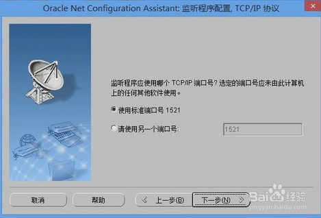 配置监听程序的TCP/IP端口号,有两个选项可供选择:使用标准端口号 1521和请使用另一个端口号;