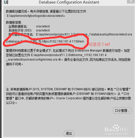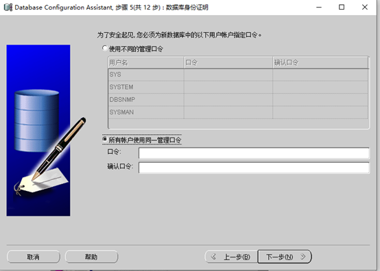 5点击所有账户使用统一的口令,设置管理口令,设置密码,密码一定要记住,测试数据库时会用