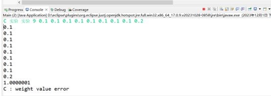 //如果解析考试课、实验课时,分项成绩权重值的总和不等于1,输出:课程名称+" : weight value error"
