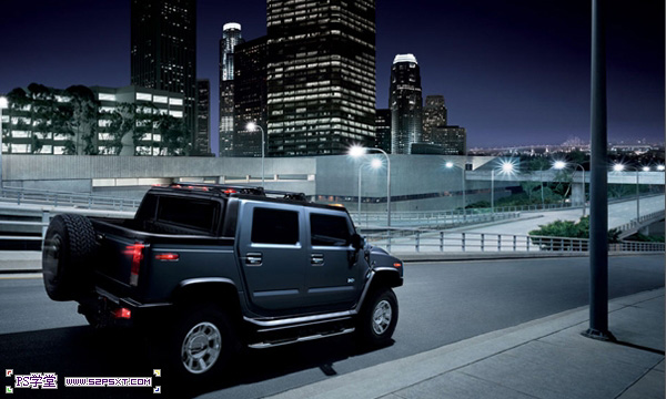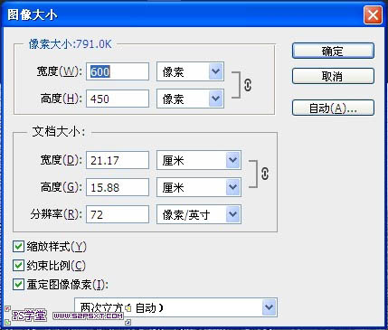 3、图象--图象大小,我们将图象改为600*450.拉入汽车素材图,改模式为叠加。