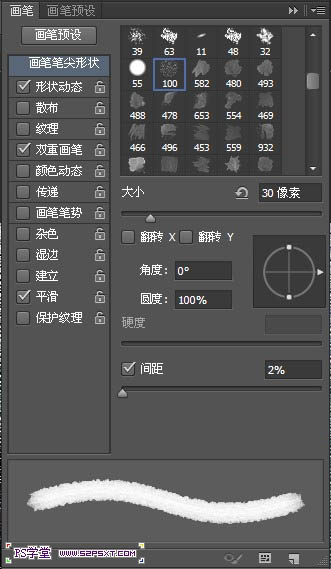 5、设置画笔,具体设置因为原教程并没有,只能自己设置大致效果。