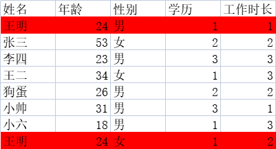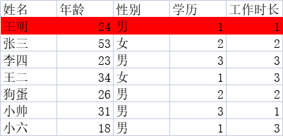 比如:选择姓名,年龄,学历进行筛选结果如下: