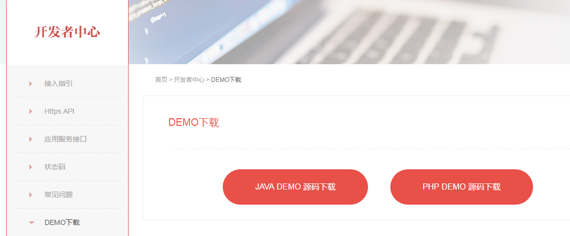 3.点击API文档(右上角),点击DEMO下载,(下载JAVA DOME源码)