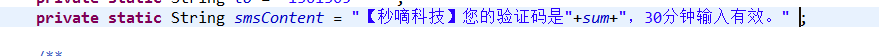 smsContent这个变量是可以使用模版的,(发送的信息就是模版中的信息,占位符可以这样写) 你生成随机数直接使用一个变量名就行。