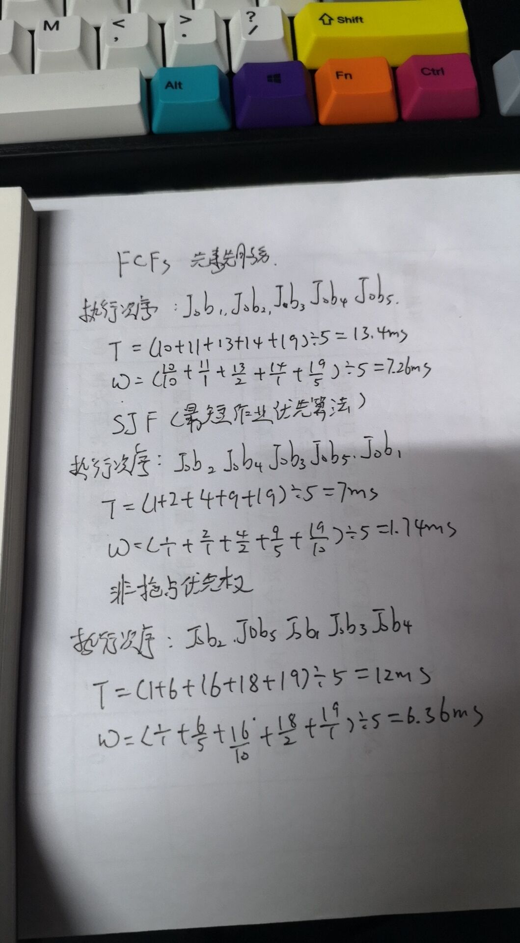 (1)采用FCFS,SJF,非抢占优先权调度算法,各作业的执行顺序。