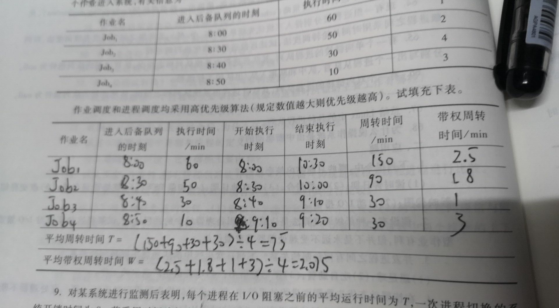 (1)采用高优先权,SRTF调度算法,各作业的执行顺序。