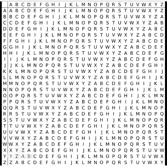 Vigenere密码表: