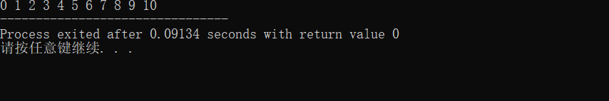 #include<iostream> #include<cstring> using namespace std; int main(){ for(int i=0;i<=10;i++){ cout<<i<<' '; } return 0; }
