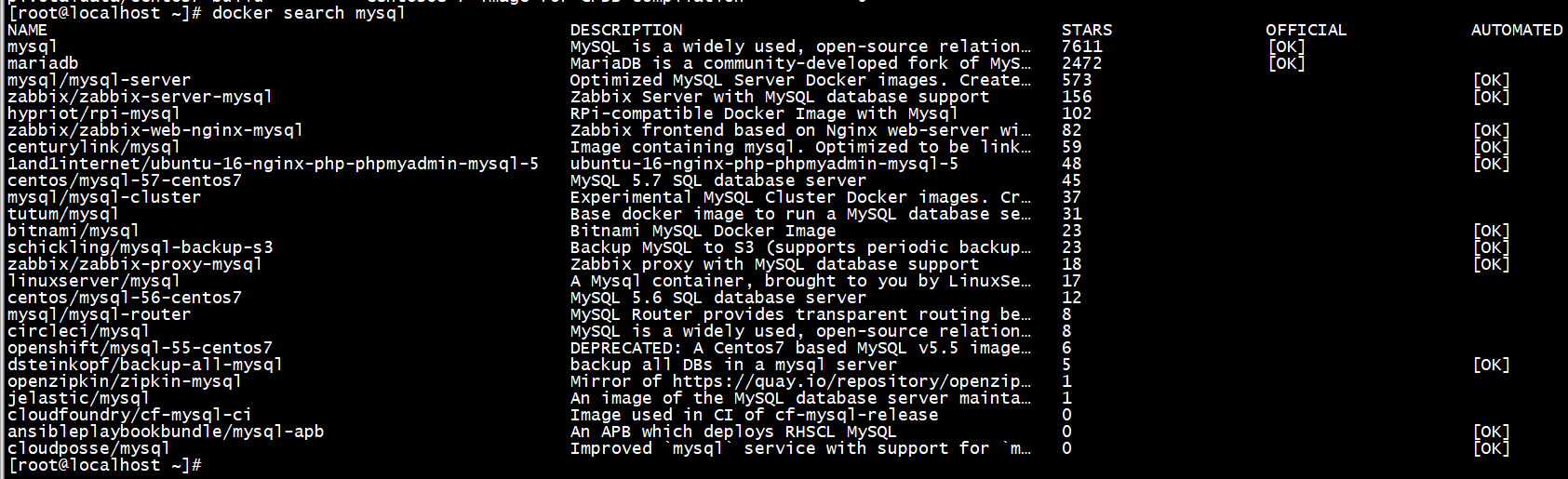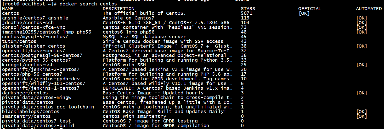 查询具体的镜像(centos),默认去docker官方网站repository仓库里面查找