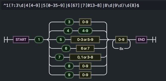 ^1(?:3\d|4[4-9]|5[0-35-9]|6[67]|7[013-8]|8\d|9\d)\d{8}$