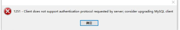 Navicat for mysql 链接Mysql数据库时出现1251报错,如下图所示: