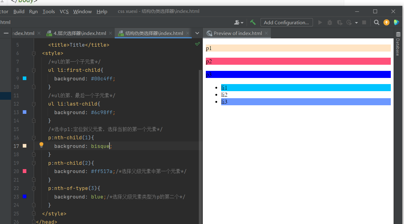 background: #ff517a;/*选择父级元素中第一个元素*/