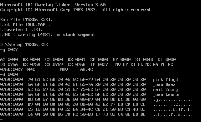 task1_4.asm,cs寄存器为076A,默认从头开始执行能找到程序入口。
