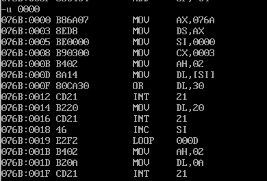 Q1 line27, 汇编指令 loop s1 跳转时,是根据位移量跳转的。通过debug反汇编,查看其机器码,分析其跳转的位移量是多少?(位移量数值以十进制数值回答)从CPU的角度,说明是如何计算得到跳转后标号s1其后指令的偏移地址的。