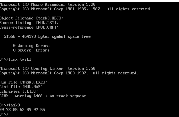 Q2 对源程序进行汇编、链接,得到可执行程序task2.exe。使用debug调试,观察、验证调试结果与理论分析结果是否一致。