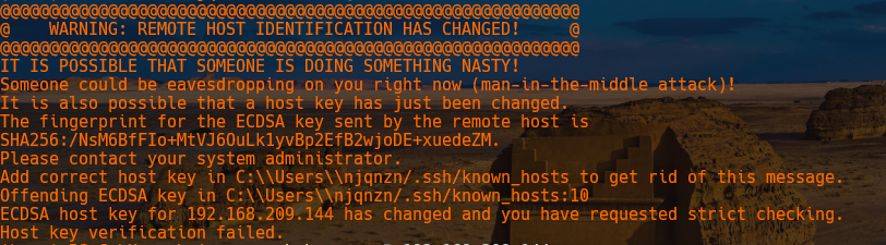 错误:WARNING: REMOTE HOST IDENTIFICATION HAS CHANGED!