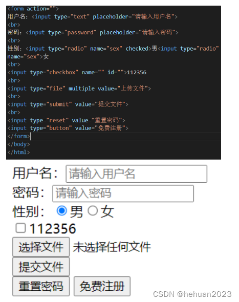 | input | button | 普通按钮,默认无功能,之后配合js添加功能 |