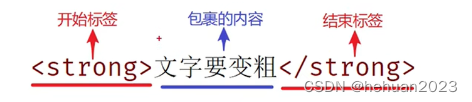 2.常见标签由两部分组成,我们称之为:双标签。前部分叫开始标签,后部分叫结束标签,两部分之间包裹内容
