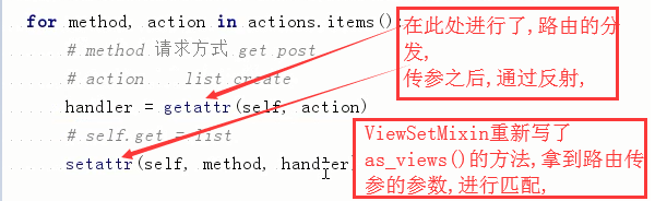 ViewSetMixin重新写了as_views()的方法,拿到路由传参的参数,进行匹配,