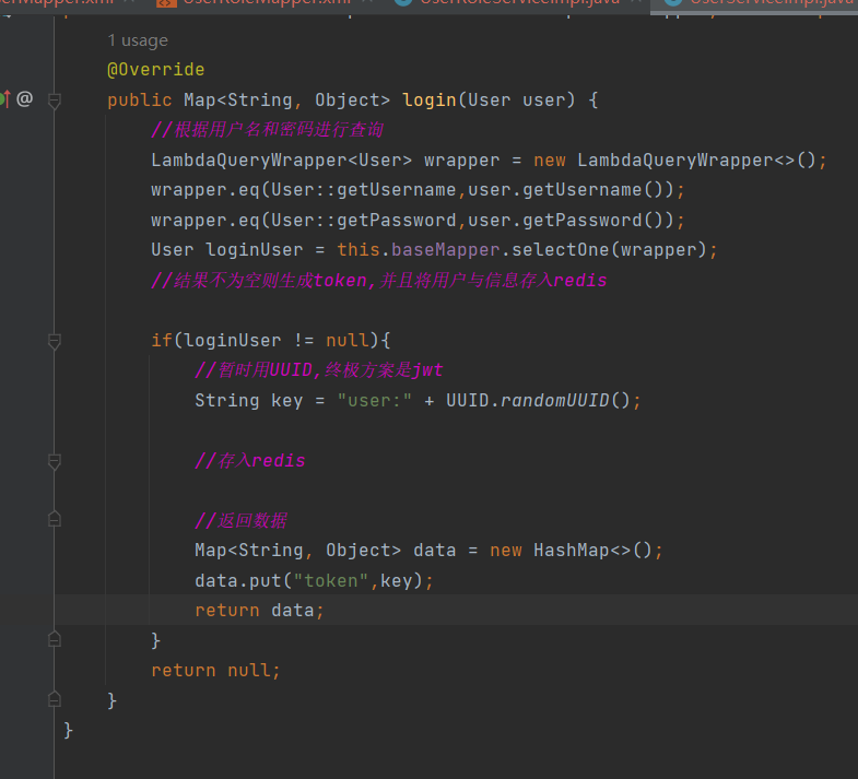 希望它能返回一个Map,写的时候login方法还没有,先生成一下。