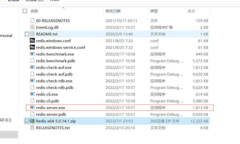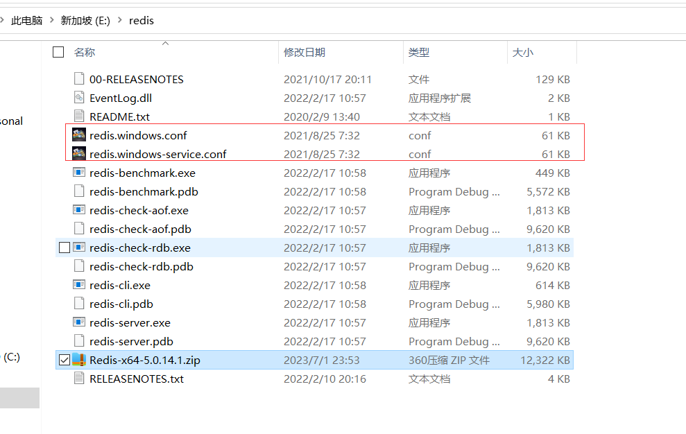 先在E盘创建一个空文件夹redis,在官网下载压缩包并解压