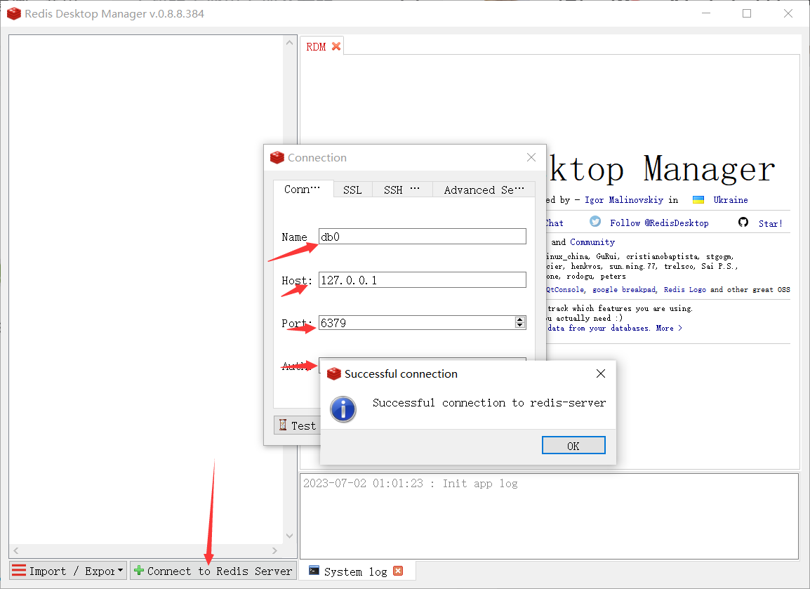 打开之后连接,Name随便填写,host地址,post端口,password密码,点击尝试连接