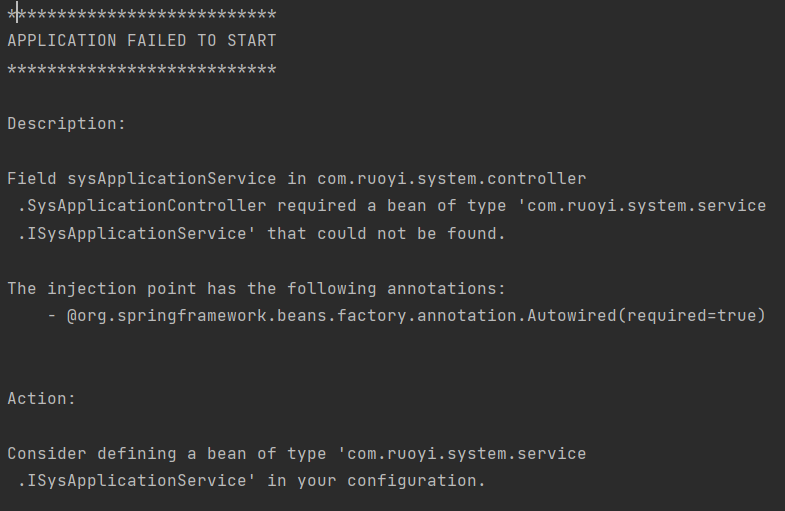Field *****Service in com.ruoyi.web.slweb.controller.SysApplicationMapper required a bean of type ‘com.