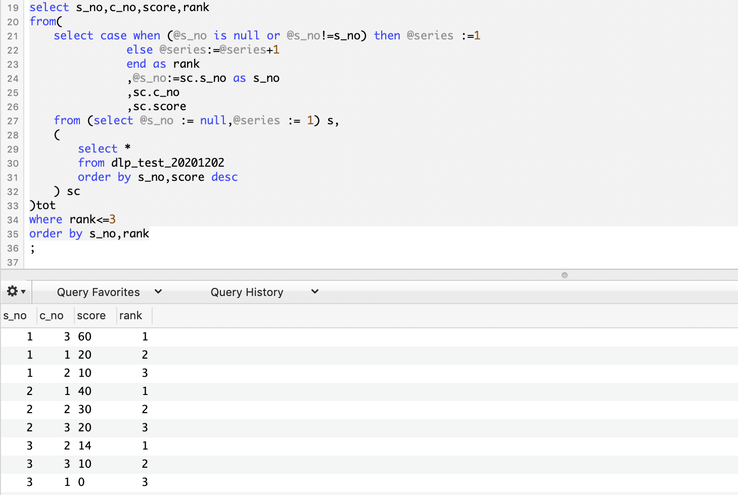 rank()/dense_rank()则把前两条相等的记录序号都设置为1,但后续则分别设置为3(rank)和2(dense_rank)。即rank()会产生序号相同的记录,同时可能产生序号间隙;而dense_rank()也会产生序号相同的记录,但不会产生序号间隙。
