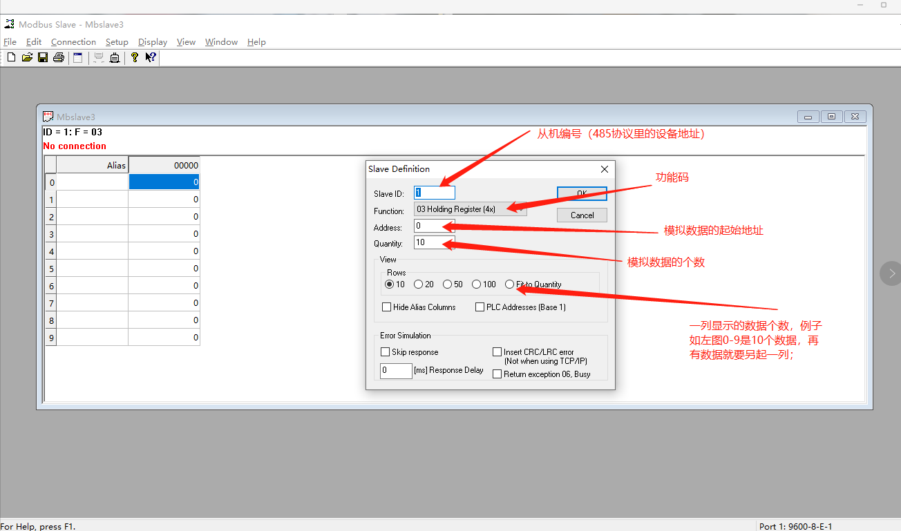 第二步设置从机对应的功能码以及数据大小等一系列的参数Setup——Slave Definition