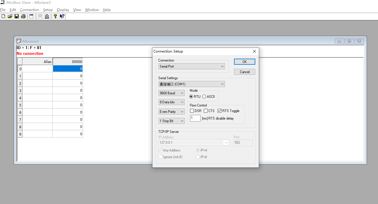这个就不多介绍了要是用rtu就串口连接,TCP就选择TCP,对应自己的参数即可,最后连接就OK了
