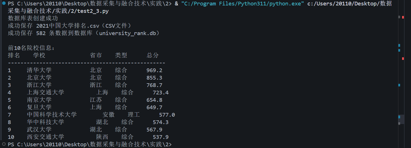 - 存储设计:创建表时包含排名、学校、省市、类型、总分5个核心字段,与页面展示的信息一一对应。