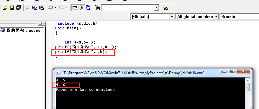 printf("a = %d, b = %d \n", a, b); //输出 a = 6, b = 5