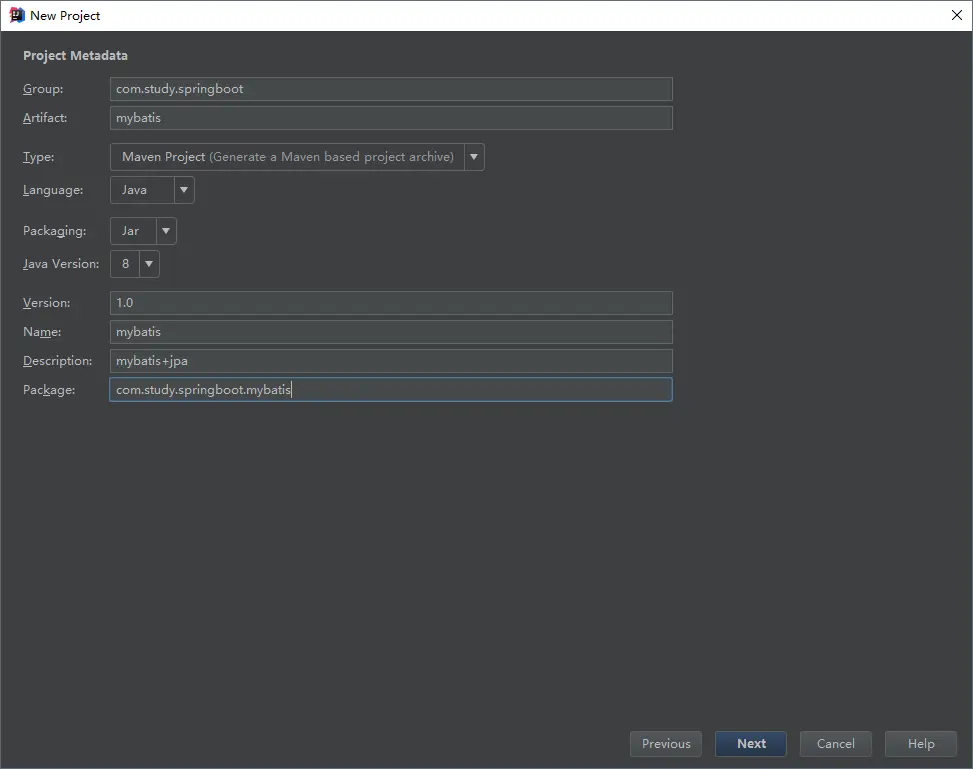<description>springboot+mybatis+jpa</description>