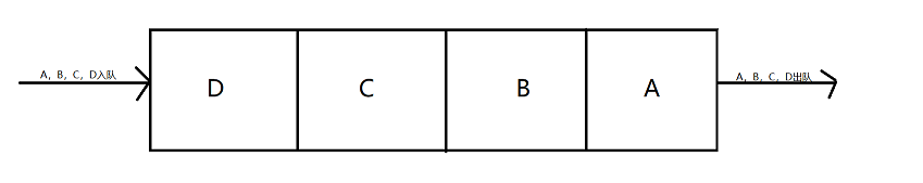 假设有A,B,C,D四个元素进栈,那么过程是:A先进栈到最底层的栈里,然后B在A的上面一层,C在B的上面,D在C的上面,依次进入